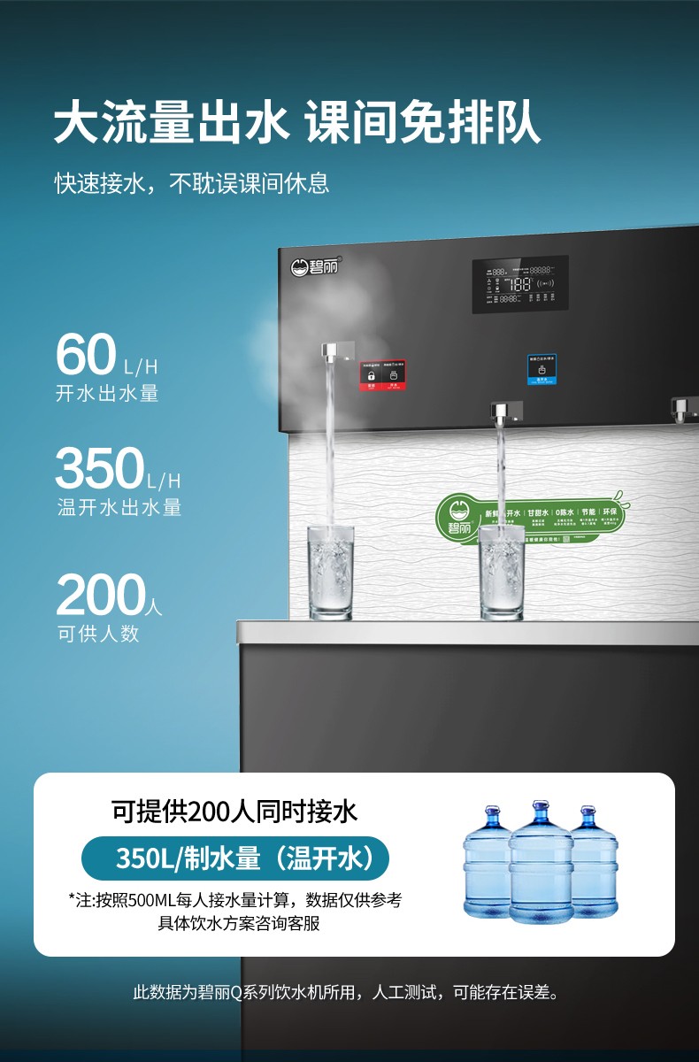 • 供 水 量:開(kāi)水60升/時(shí),溫開(kāi)水350升/時(shí)